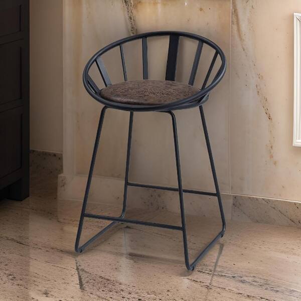 23 in. Brown and Black Low Back Metal Frame Bar Stool with Faux Leather Seat (Set of 2)