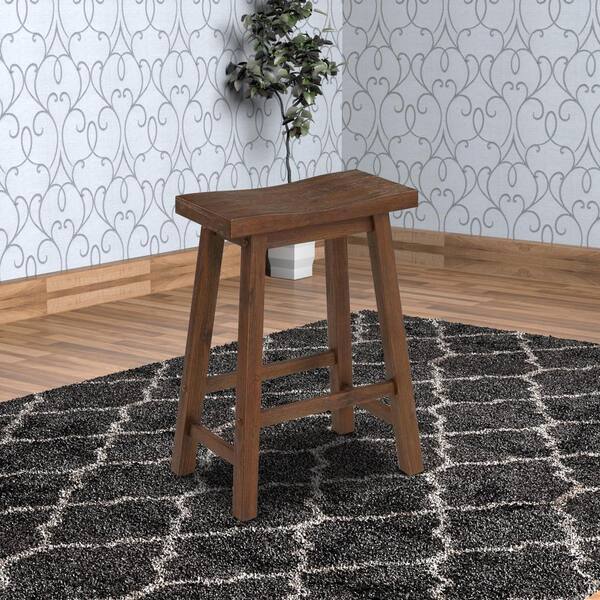 24.25 in. H Brown Saddle Design Wooden Backless Counter Stool with Grain Details