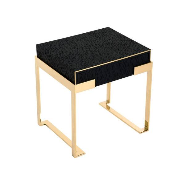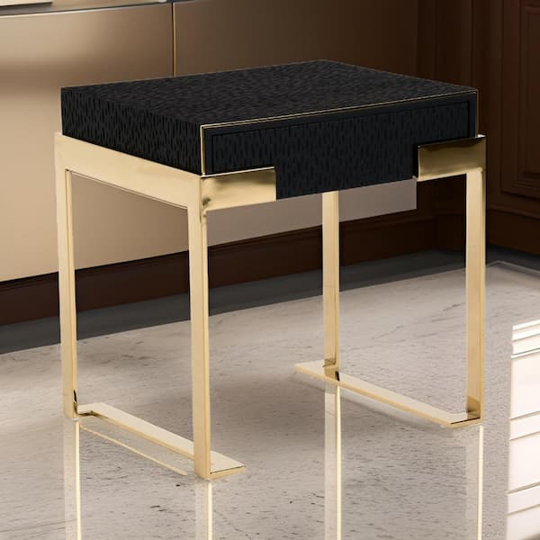 24.6 in. Wenge Black and Gold 1-Drawer Wooden Nightstand