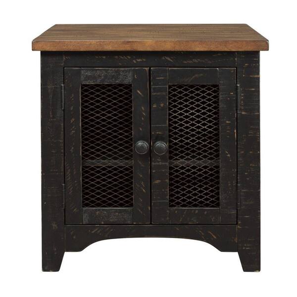 24 in. Black and Brown Rectangle Wood End Table with Metal Frame