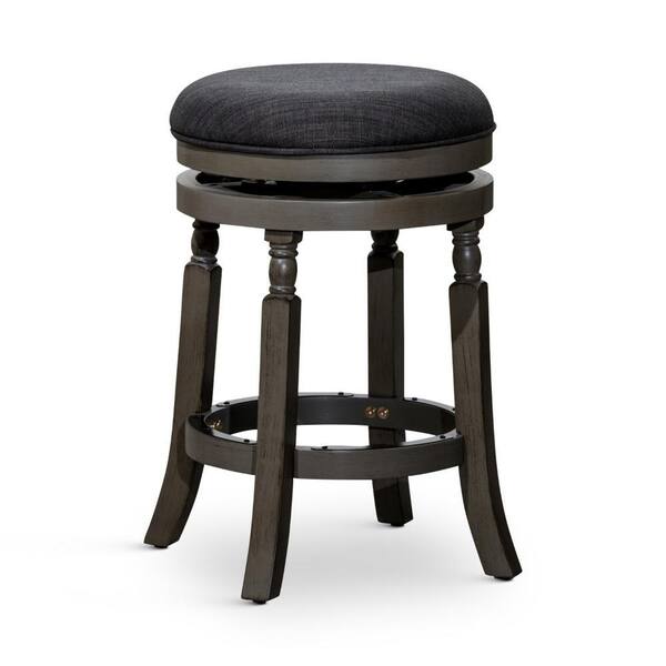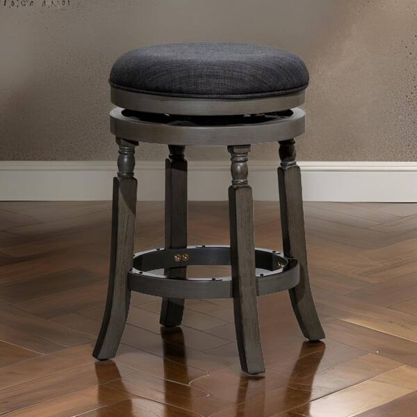 24 in. Gray and Black Backless Wood Frame Bar Stool with Polyster Seat