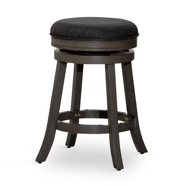 24 in. Gray and Black Backless Wood Frame Bar Stool with Polyster Seat