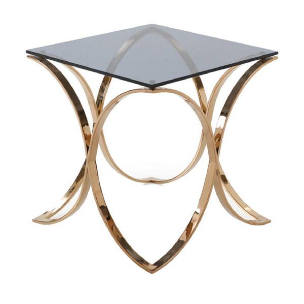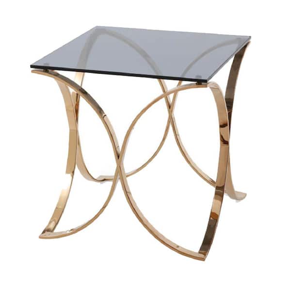24 in. Rose Gold and Smoked Black Square Glass End Table Metal Frame