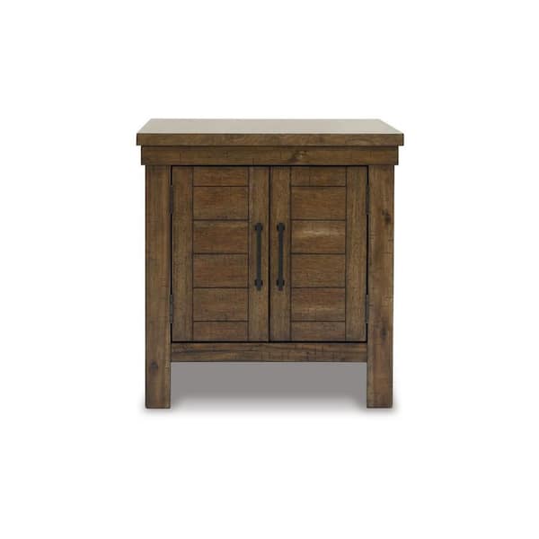 24 in. Rustic Brown Rectangle Wooden End Table with Dual Door Cabinet