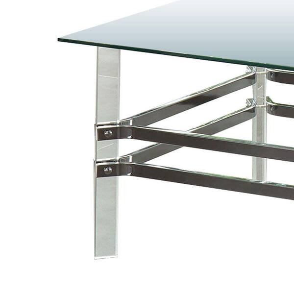 24 in. Silver Rectangular Glass and Metal Coffee Table with Tubular Legs