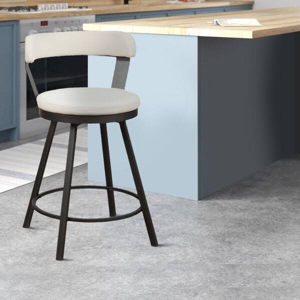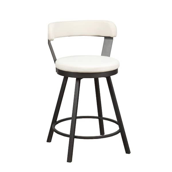 25.25 in. White Low Back Metal Frame Counter Height Stool Chair with Faux Leather Seat (Set of 2)