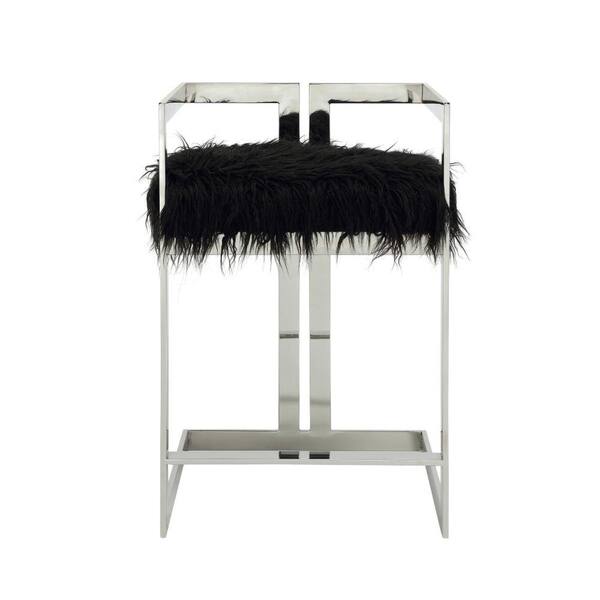25.5 in. Black and Silver Low Back Metal Frame Bar Stool with Fabric Seat