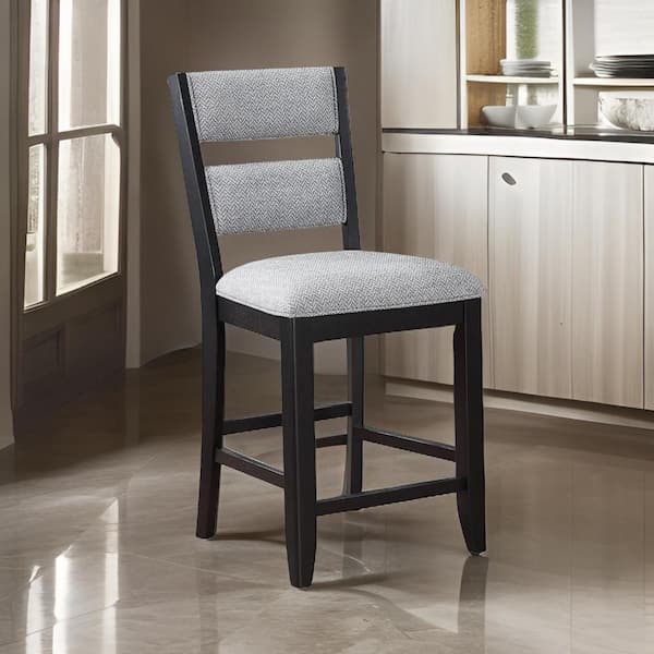 25.5 in. Gray and Black High Back Wood Frame Bar Stool with Fabric Seat (Set of 2)