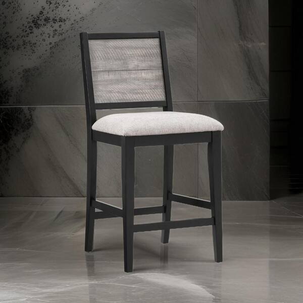 26.5 in. Gray and Black Low Back Wood Frame Bar Stool with Polyster Seat (Set of 2)