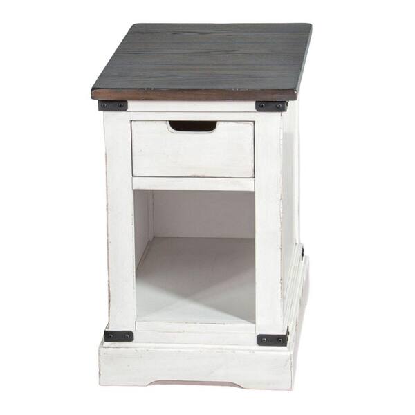26 in. Off White, Brown and Black Rectangle Wood End Table with Drawer