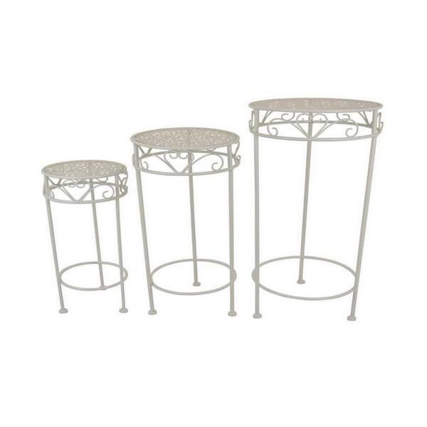 27.5 in. Ivory Round Metal Plant Stand with 1 Tier (Set of 3)