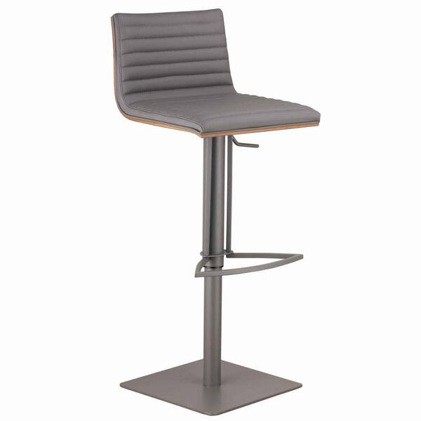 27 in. Gray Low Back Metal Frame Bar Stool with Faux Leather Seat