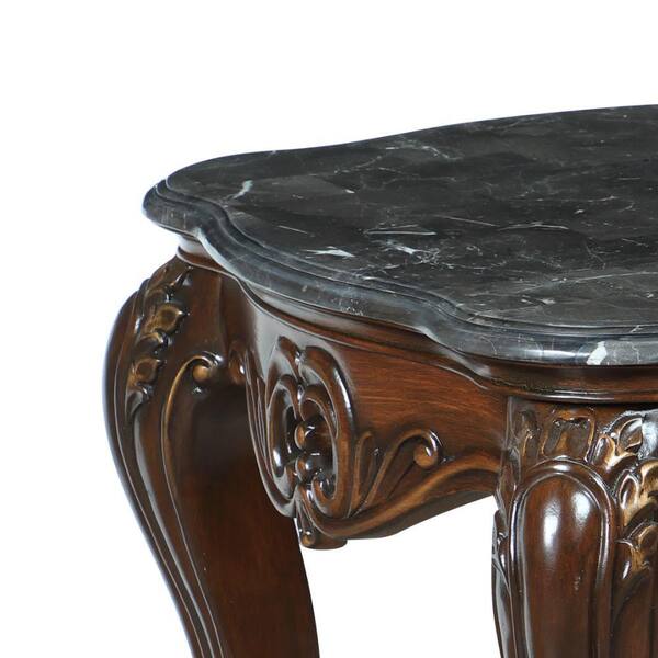 28.5 in. Brown and Black Other Marble End Table with Floral Engravings
