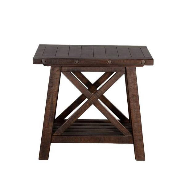 28 in. Brown and Silver Rectangle Wood End Table with 4 Legs Base