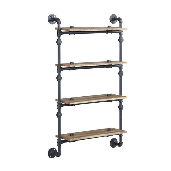 28 in. W x 9 in. D x 47 in. Brown and Black Wall Mount Rack with 4 Tier and Industrial Pipe Frame Decorative Wall Shelf