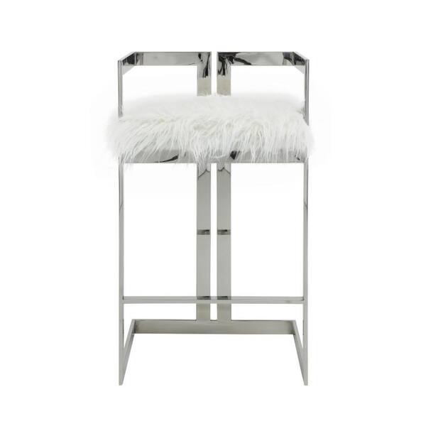 29.5 in. White and Silver Low Back Metal Frame Bar Stool with Fabric Seat