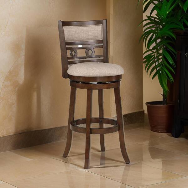 29 in. Brown Low Back Wood Frame Bar Stool with Polyster Seat