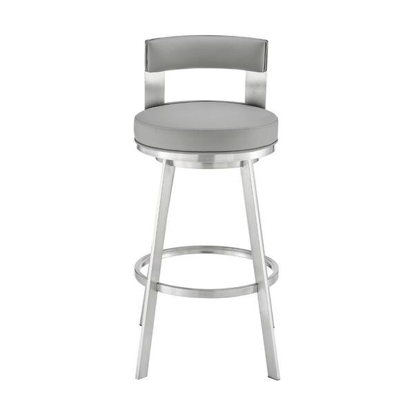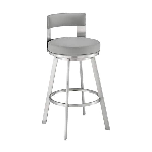 29 in. Gray and Chrome Low Back Metal Frame Counter Stool with Faux Leather Seat