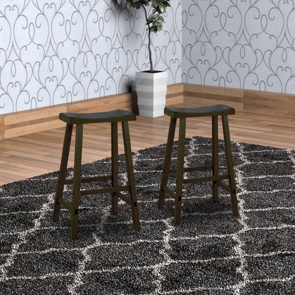 29 in. H Black Wooden Counter Height Stool with Saddle Seat (Set of 2)