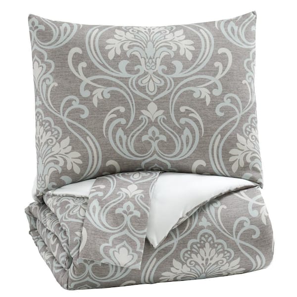 3-Piece Beige and White Medallion Microfiber Queen Comforter Set