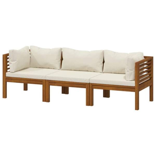 3-Piece Brown Wood Outdoor Modular Sectional Sofa with Cream Cushions