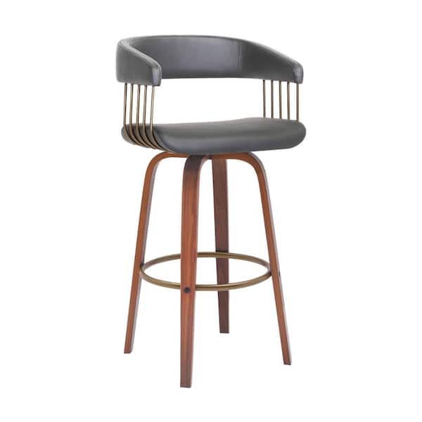30.5 in. Gray, Bronze and Brown Low Back Metal Frame Bar Stool with Faux Leather Seat