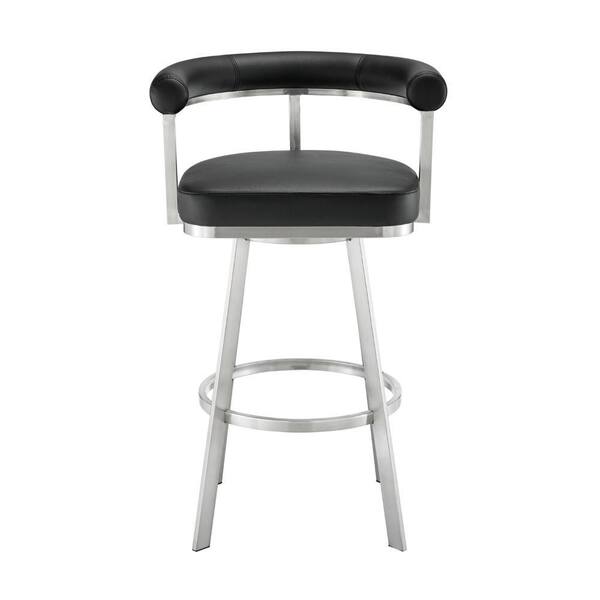 30 in. Black and Chrome Low Back Metal Frame Bar Stool with Faux Leather Seat