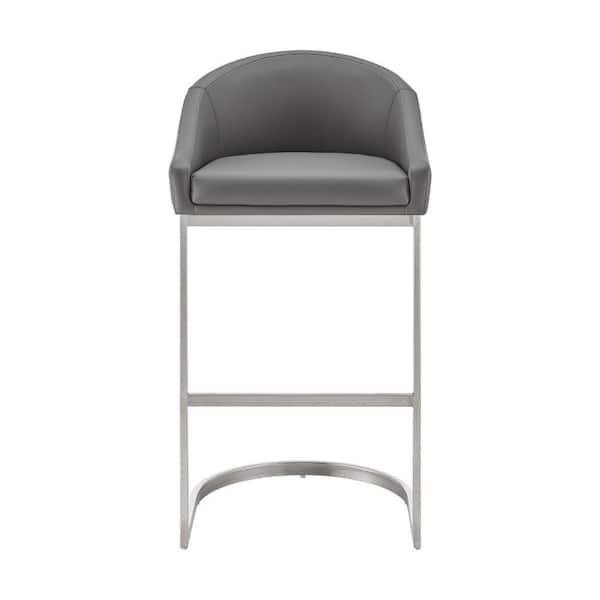30 in. Gray and Chrome Low Back Metal Frame Bar Stool with Faux Leather Seat