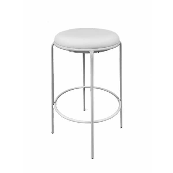 30 in. White Backless Metal Frame Bar Stool with Faux Leather Seat (Set of 2)