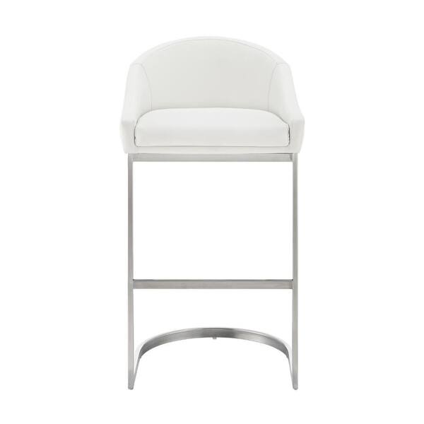 30 in. White and Chrome Low Back Metal Frame Bar Stool with Faux Leather Seat