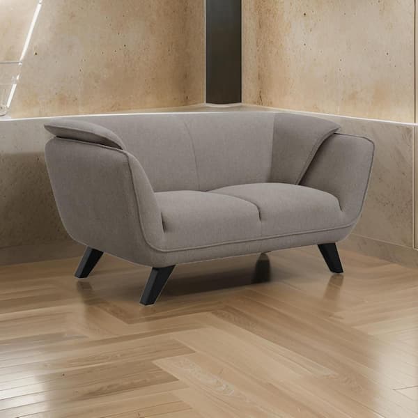 33.5 in. Brown and Black Solid Print Linen 2-Seater Loveseat with Wooden Frame