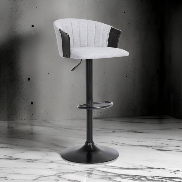 33 in. Gray and Black Low Back Metal Frame Bar Stool with Fabric Seat