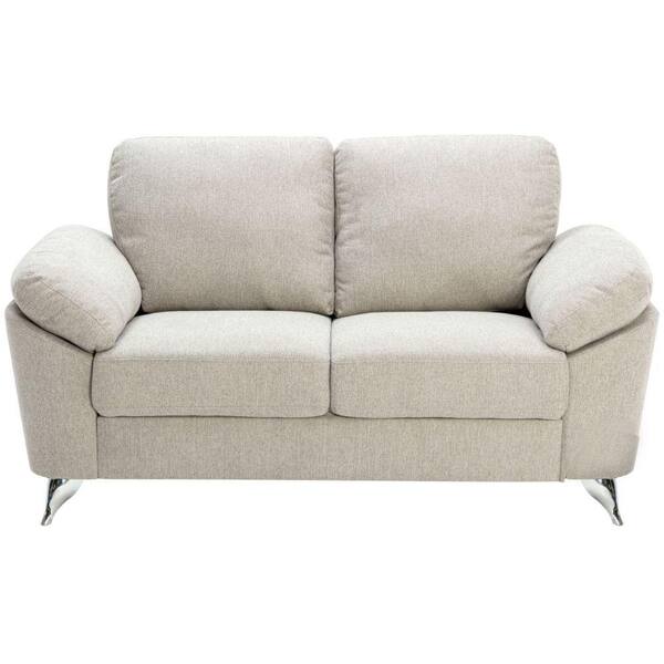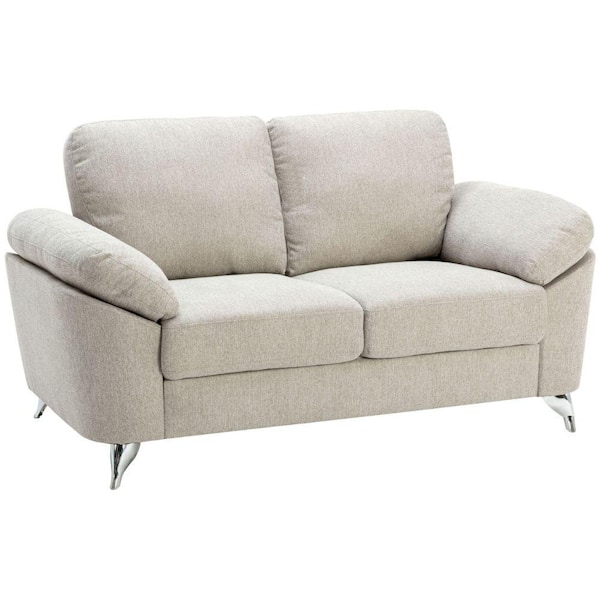 34.25 in. Light Gray and Silver Solid Polyester 2-Seater Loveseat with Metal Legs and Pillow Back