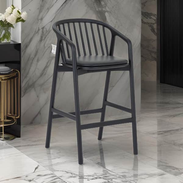 35 in. Black Low Back Wood Frame Bar Stool with Faux Leather Seat
