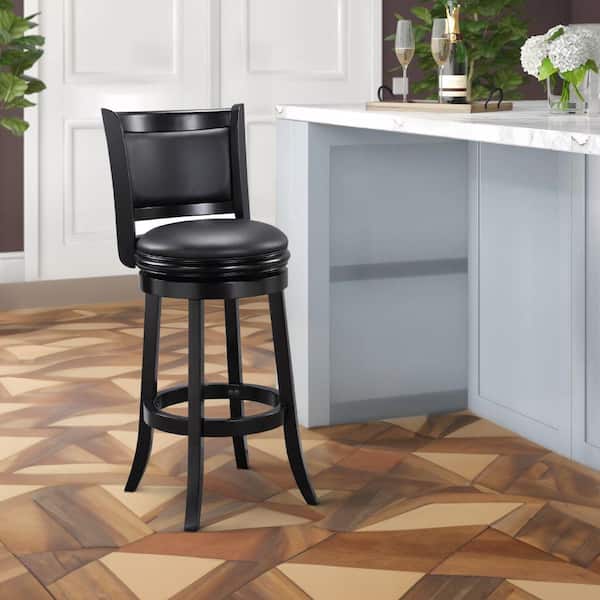 35 in. Black and Gray Full Back Wooden Frame Faux leather Upholstered Swivel Barstool with Curved Backrest