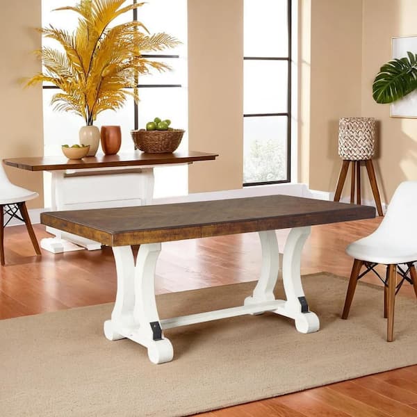 36 in. White and Brown Wood Double Pedestal Dining Table (Seat of 8)