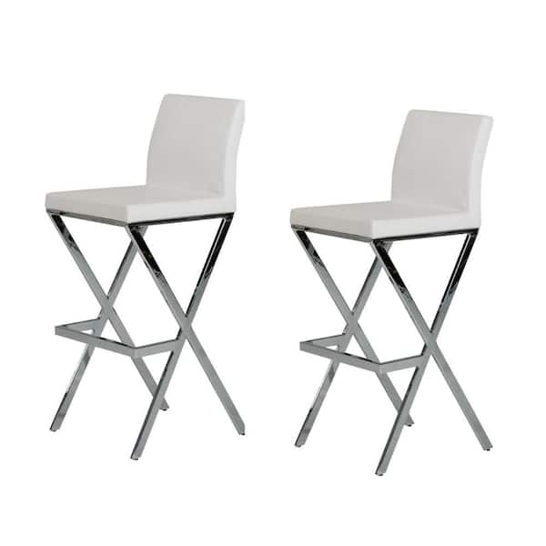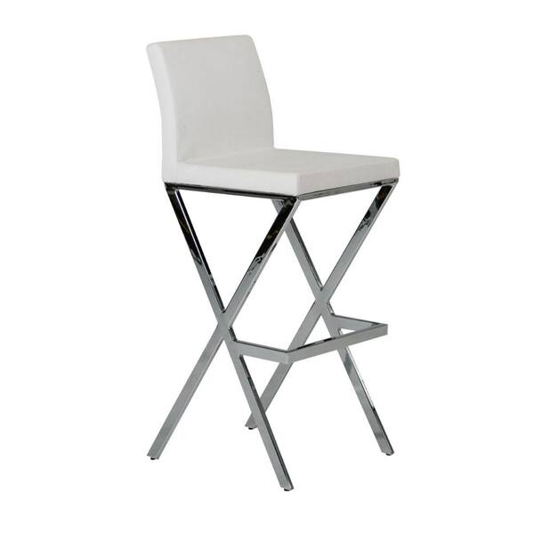 36 in. White and Chrome Low Back Metal Frame Bar Stool with Faux Leather Seat