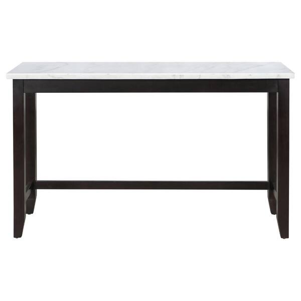 36 in. White and Espresso Brown Rectangle Stone Bar Table with Open Trestle Base