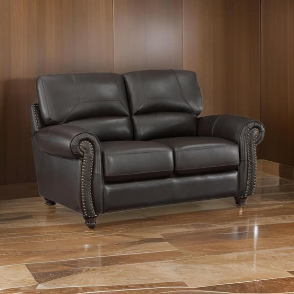 37 in. Brown and Espresso Brown Faux Leather 2-Seater Loveseat