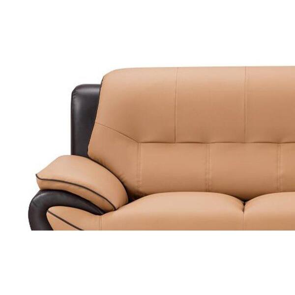 37 in. Brown and Silver Solid Faux Leather 2-Seater Loveseat with Pillow Top Armrest