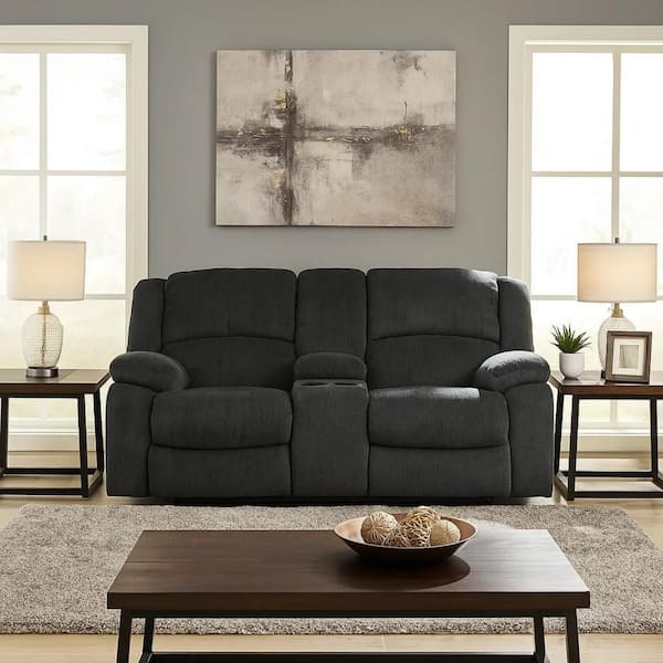 37 in. Pillow Top Arm Chenille Rectangle Loveseat Recliner Sofa in Dark Gray