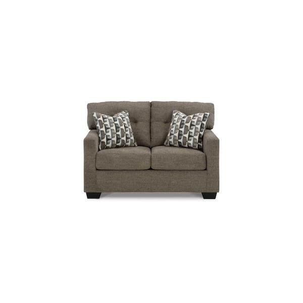 38 in. Brown and Black Solid Print Polyester 2-Seater Loveseat with Tufted Back