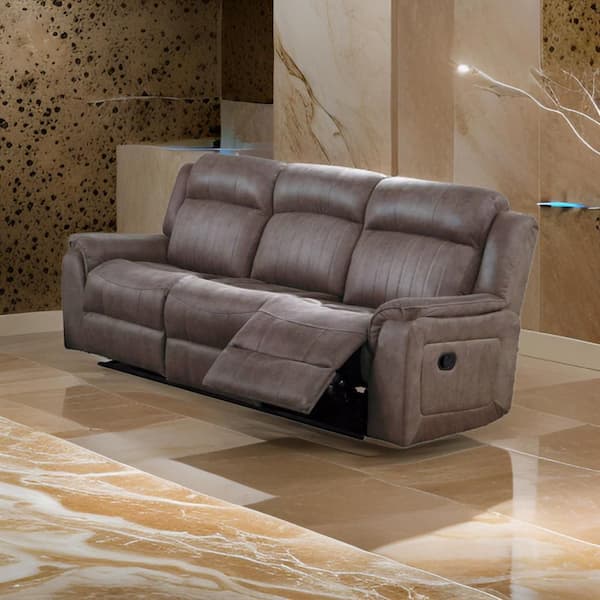 38 in. Straight Arm Leather Straight Rectangle Power Reclining Sofa in Brown