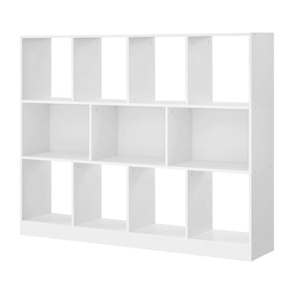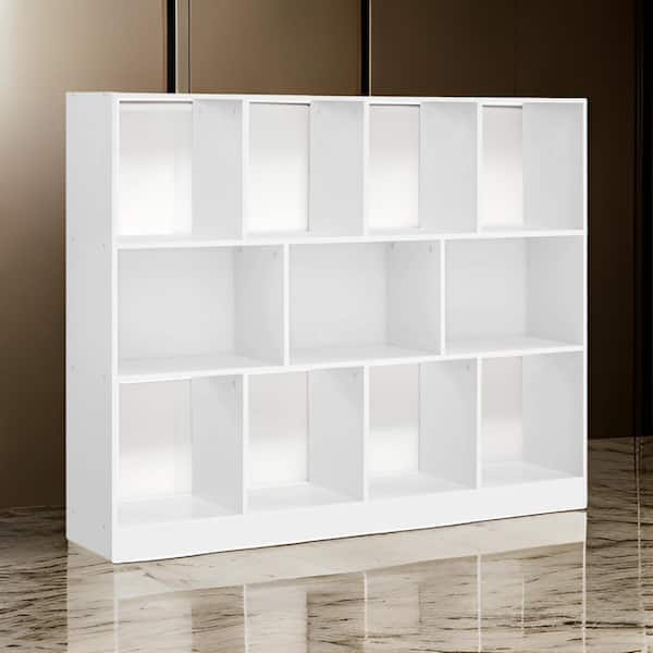 39.37 in. Tall White Wood 11-Shelf Standard Bookcase with Stable Plinth Base