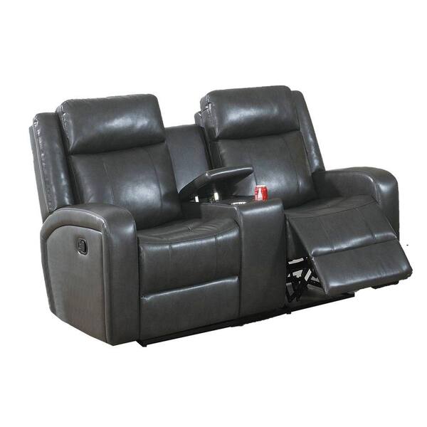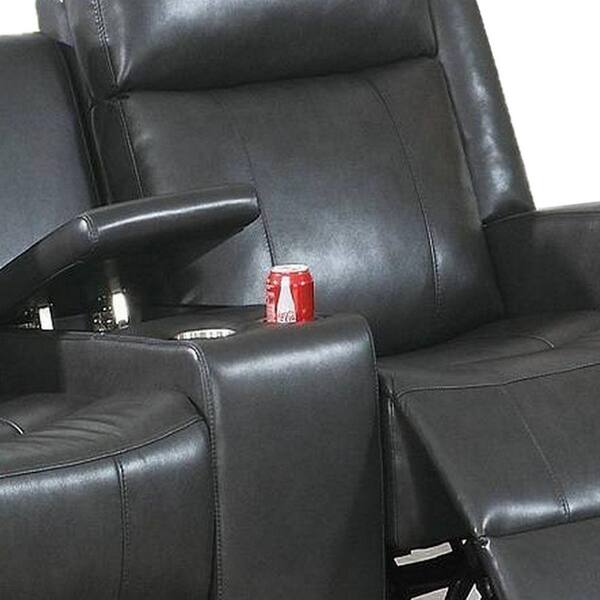39 in. Black Solid Faux Leather 2-Seater Power Motion Loveseat with USB Port and Padded Headrest