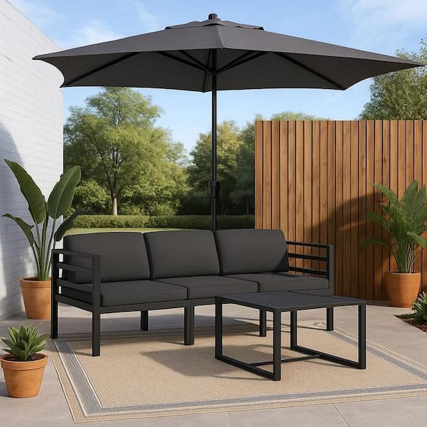 4-Piece Gray Metal Outdoor Modular Sectional Sofa with Gray Cushion