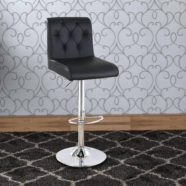 40 in. Black Low Back Metal Adjustable Bar Stool with Rolled Button Tufted Back (Set of 2)