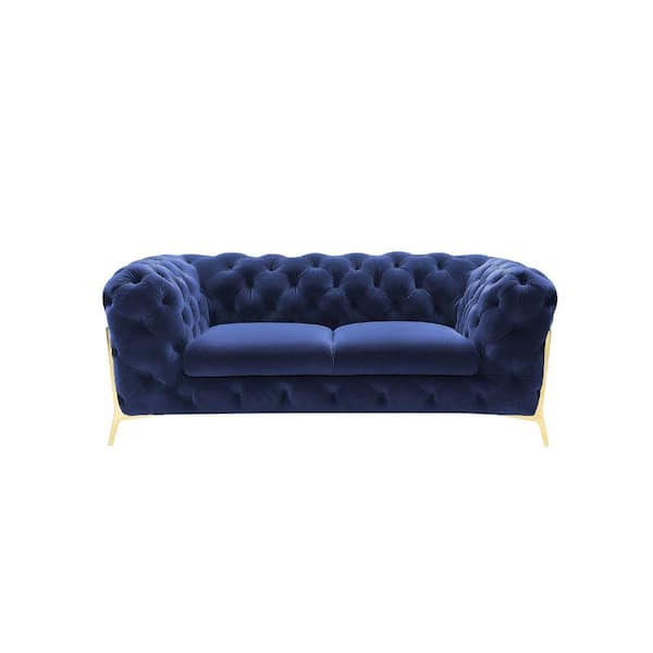 40 in. Blue Solid Fabric 2-Seater Loveseat with Chesterfield Design