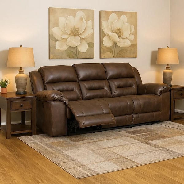 41 in. Pillow Top Arm Faux Leather Rectangle Power Recliner Sofa in Brown
