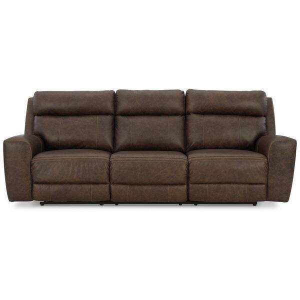 41 in. Straight Arm Leather Straight Rectangle Power Reclining Sofa in Brown